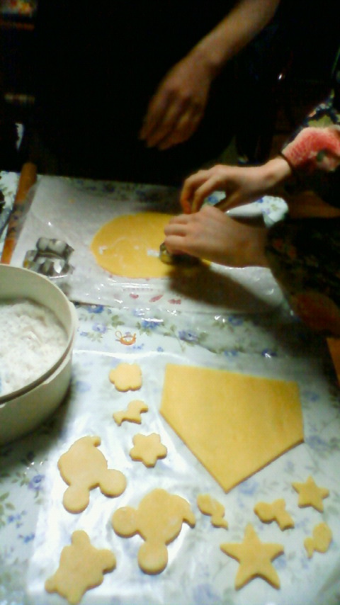 全部アイシングで落書きしようと言う話になっていたので型抜きでみんな好き勝手に(でも人数分は確保しつつ)抜きまくりです☆