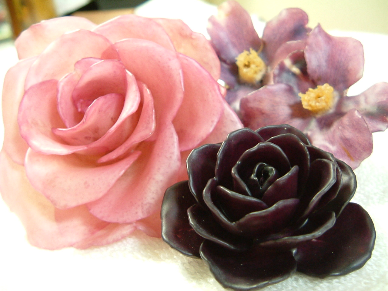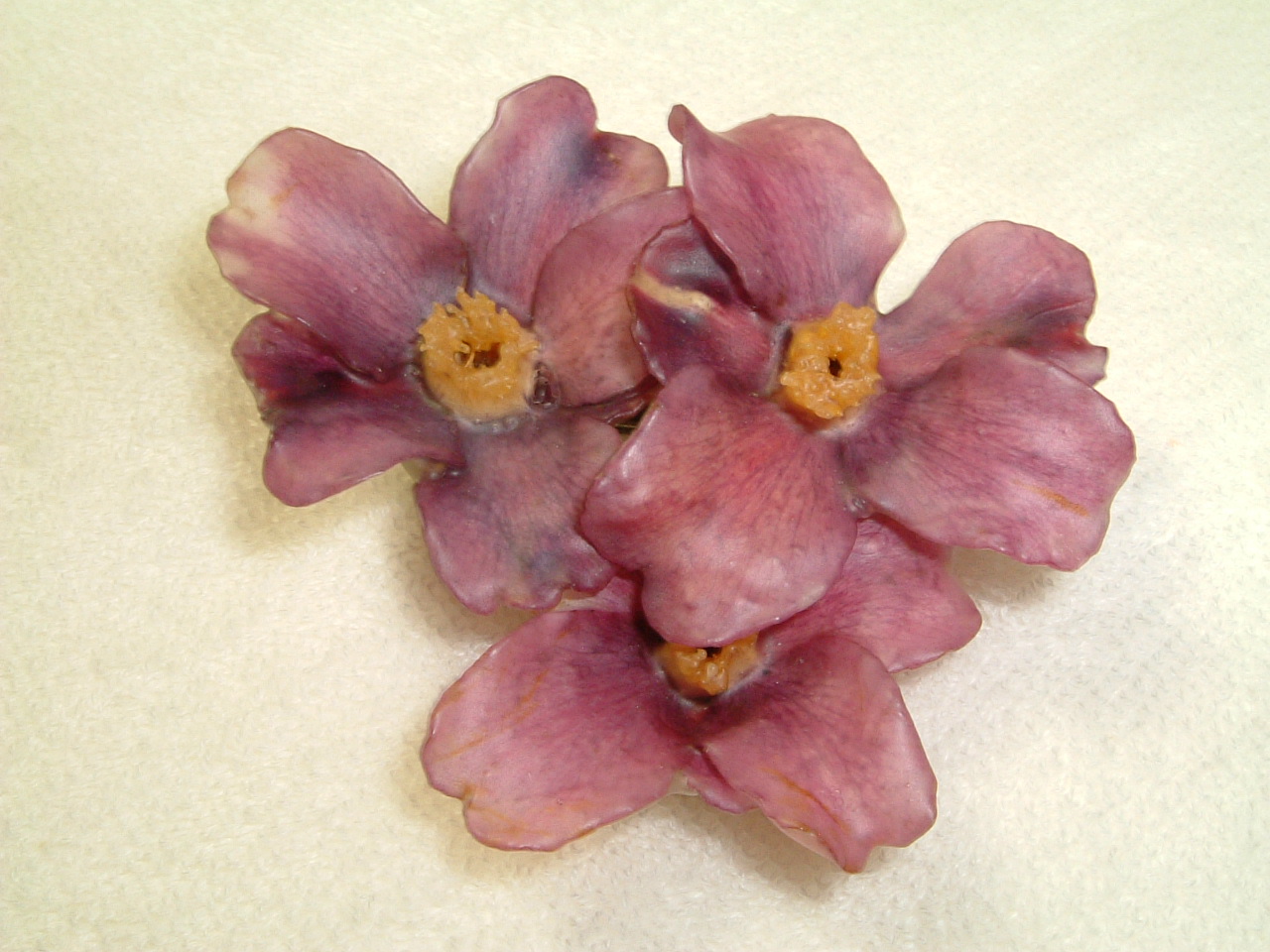 このコサージュ達、何が凄いって本物の花を特殊な樹脂で固めてあるので数年経つとセピア色になるんです!