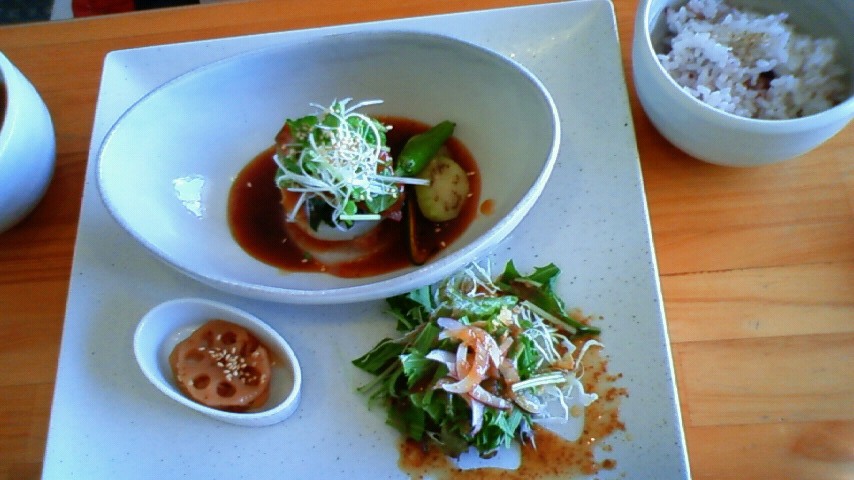 凌の家の裏側の道路脇に新聞紙広げて座布団ひいて、机まで運んで・・・食べてる時にタクシーが一台通ってちょびっと恥ずかしかったですがww