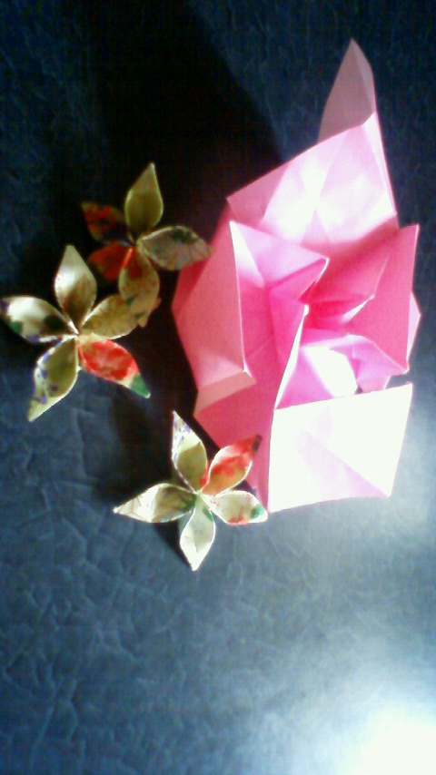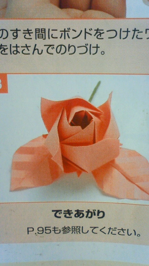 と言う事で、上の一冊ともう一冊「贈れる花」なる折り紙の本を借りて早速家で挑戦!!!