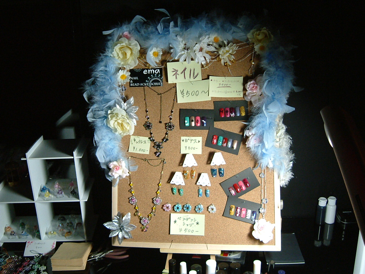 真っ暗だったので一緒にお店やったビーズの友達が電気スタンドを用意してくれてマジ助かりました;