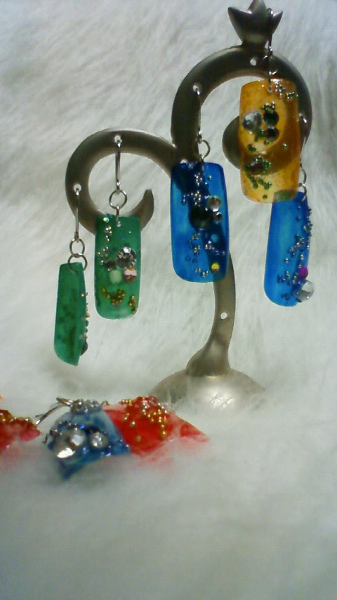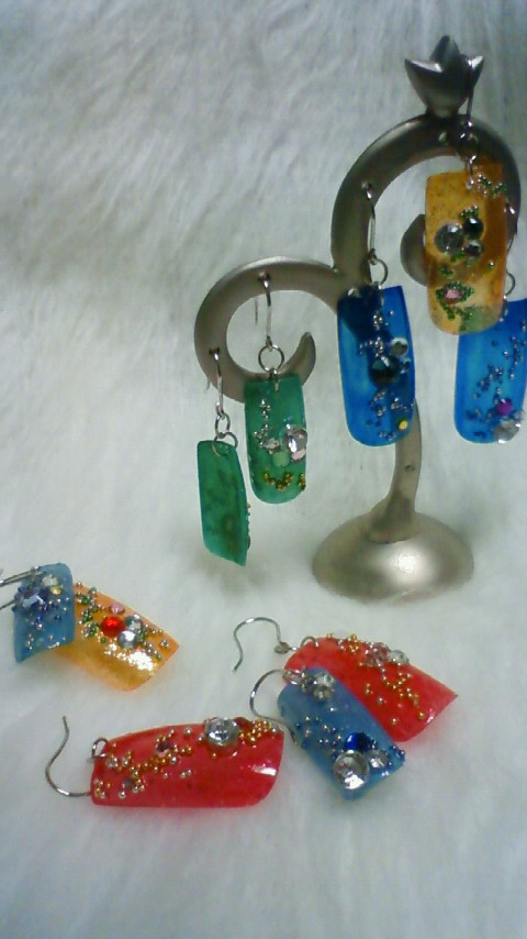 以前本屋でネイルチップでカンザシやらピアスやらストラップやら作ってみたぞってのを見たのでちょっと杜若もやってみました。