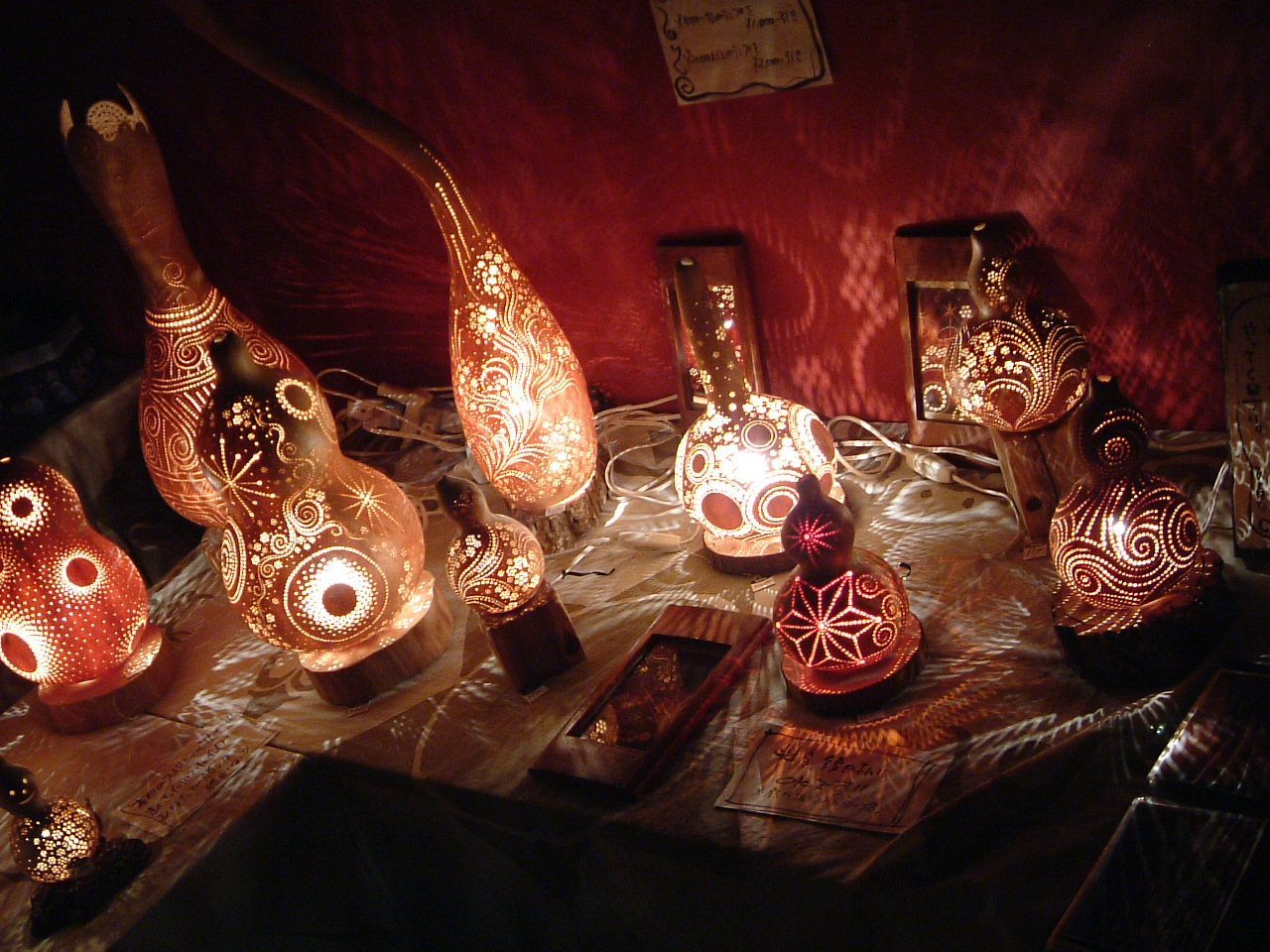 あ、これも初めてなのですが(←初めてだらけやん!!;)瓢箪(ひょうたん)で出来たランプを拝見しました!